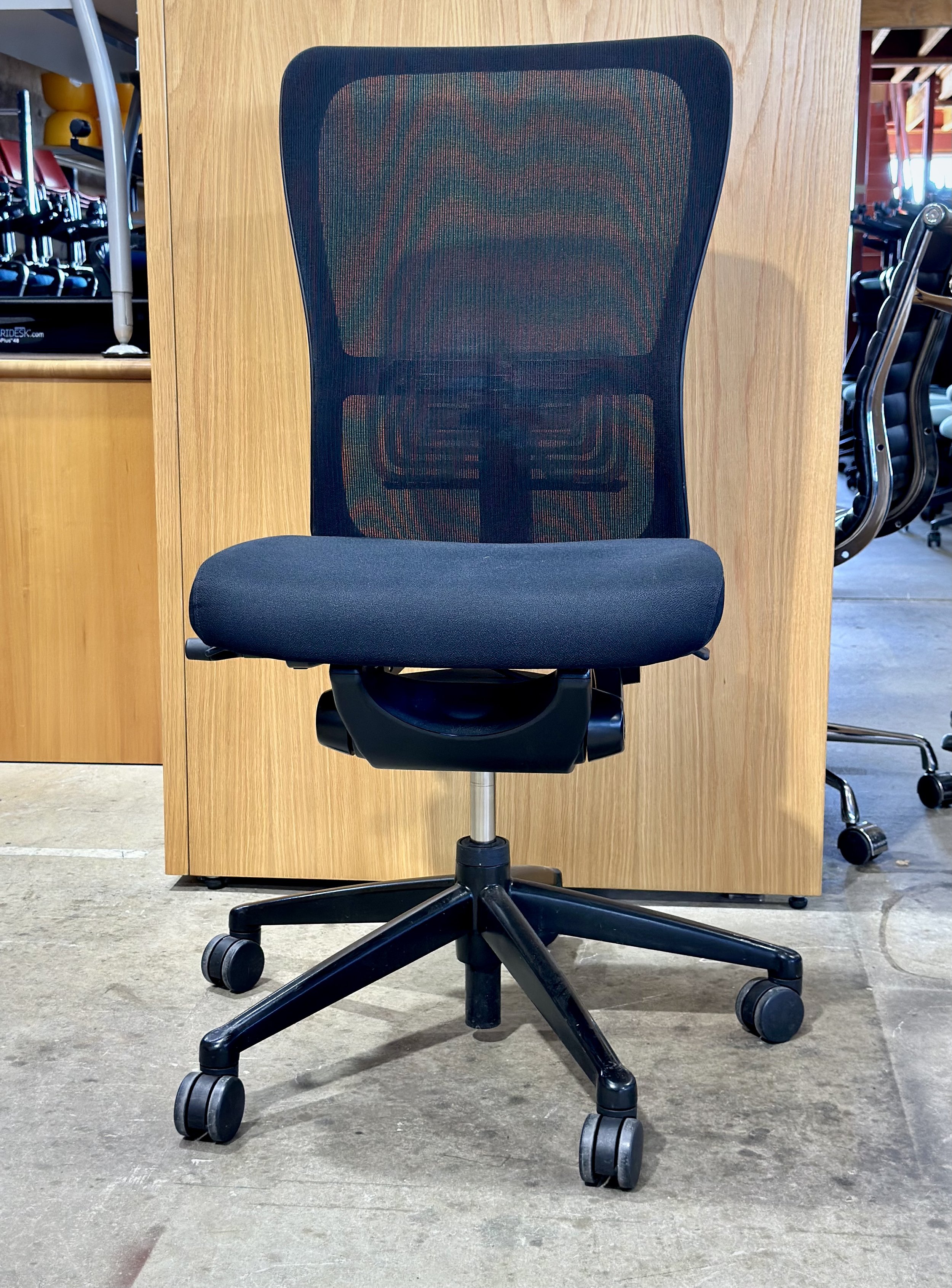 It’s also one we rate highly. You’ll see the Haworth Zody task chair in use behind our own counter at the showroom. We have access to a lot of different chairs, but the Zody’s synchro movement and forward tilt give it a very natural sitting feel that many people prefer.