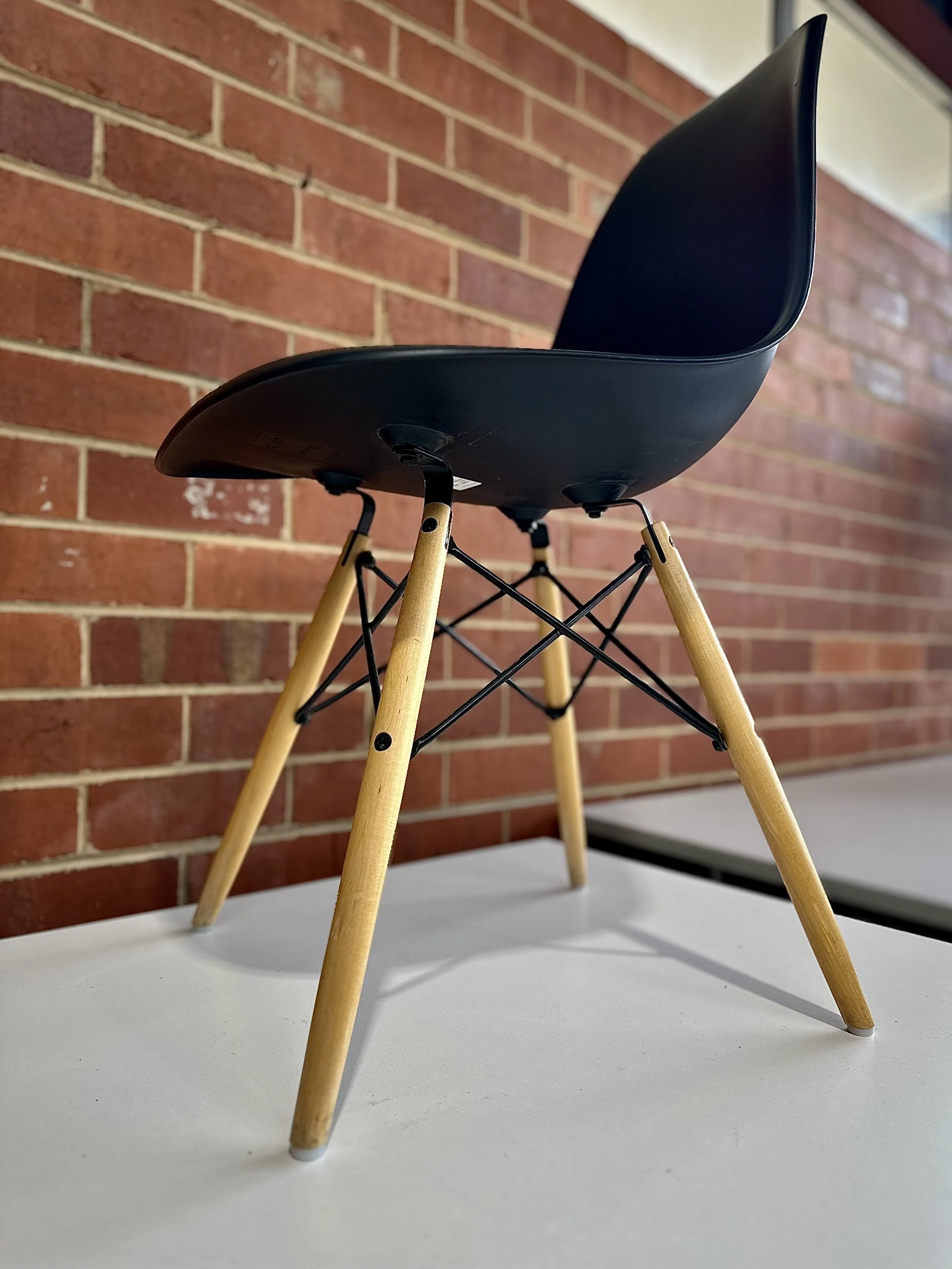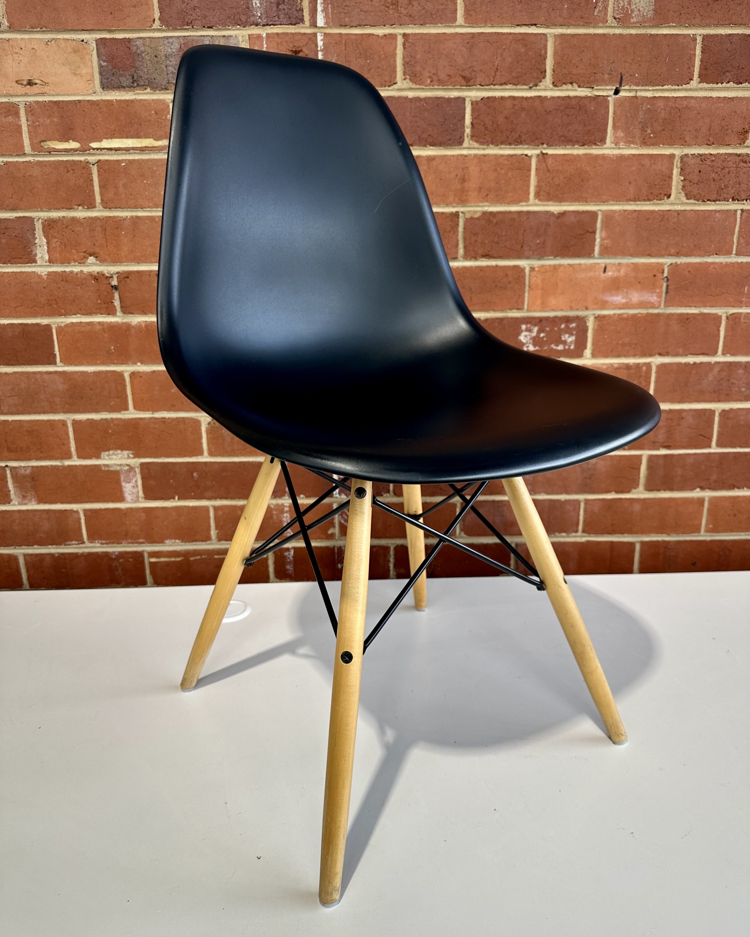 Eames Plastic Side Chair — Black — Dowel & Eiffel Bases (Vitra)