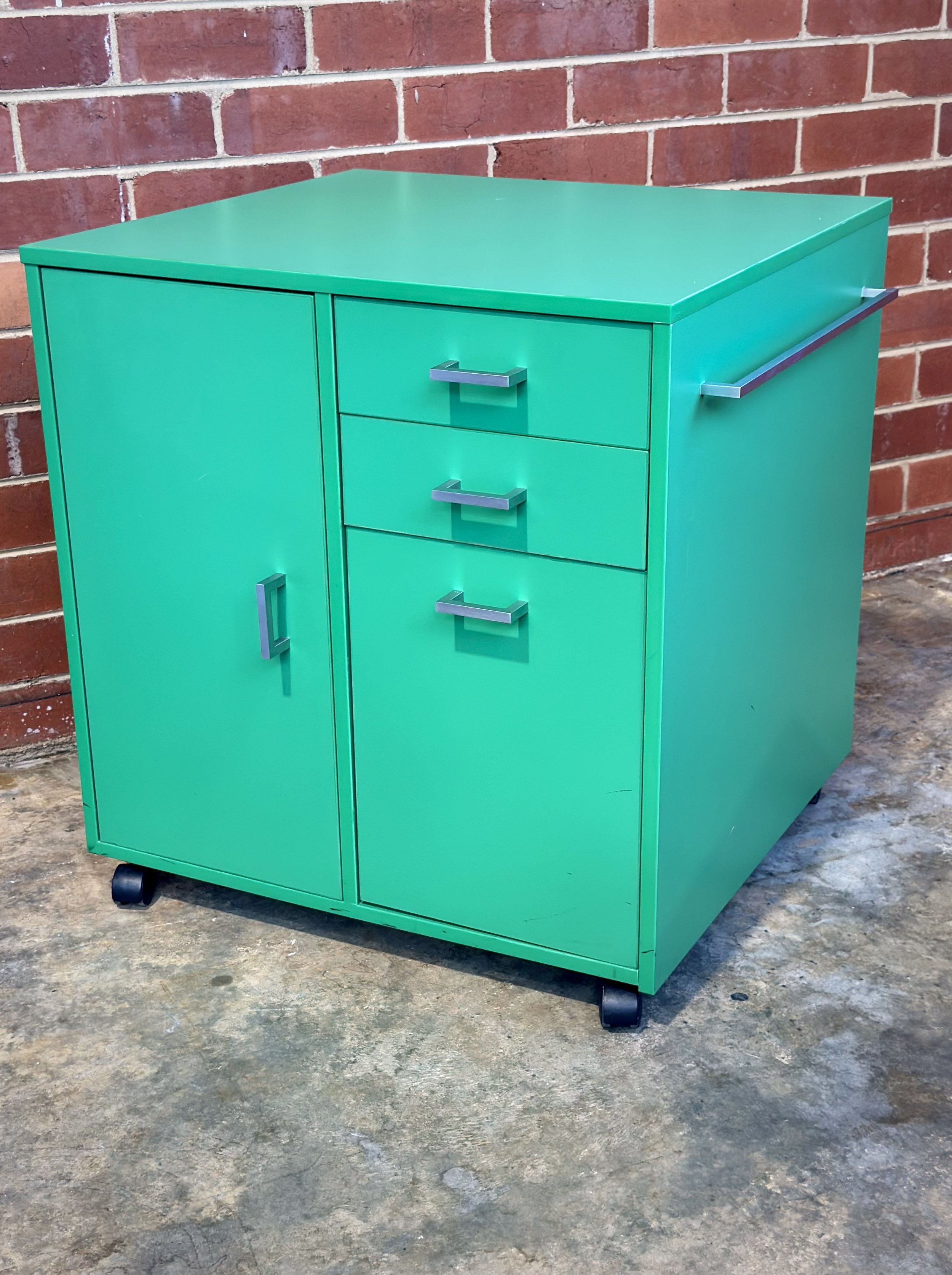 This Schiavello mobile storage caddy is a combination drawer and cupboard unit designed for commercial office environments. Schiavello furniture is widely used in Australian corporate and government workplaces, where practical personal storage is needed alongside workstations.